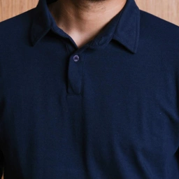 - Kerah polo dengan placket kancing rapi
